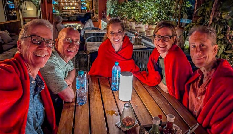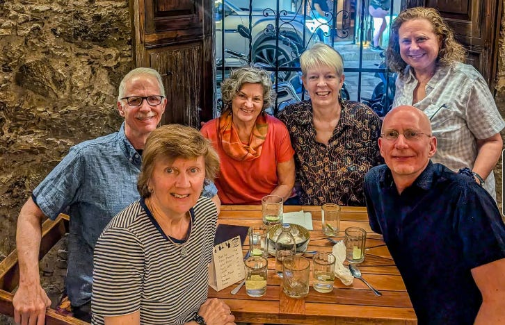 But hey, here in Mexico, Michael and I had a nice dinner out with two friends last Saturday night at a mid-range restaurant with a charming little courtyard. It was just over a thousand pesos—$52 USD, or $13 a person, including alcohol and a tip.
