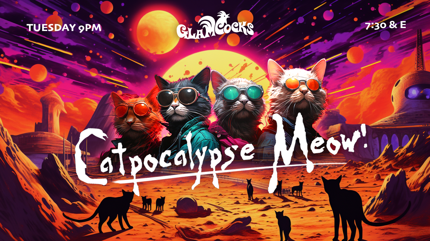 Spend the last of your nine lives with the GlamCats and their mewling feline-up killin’ it like curiosity. Whether you’re a cute lil’ kitty or a sexy jungle stalker, come sleek across the catwalk and you might just find yourself a bowl of warm cream.