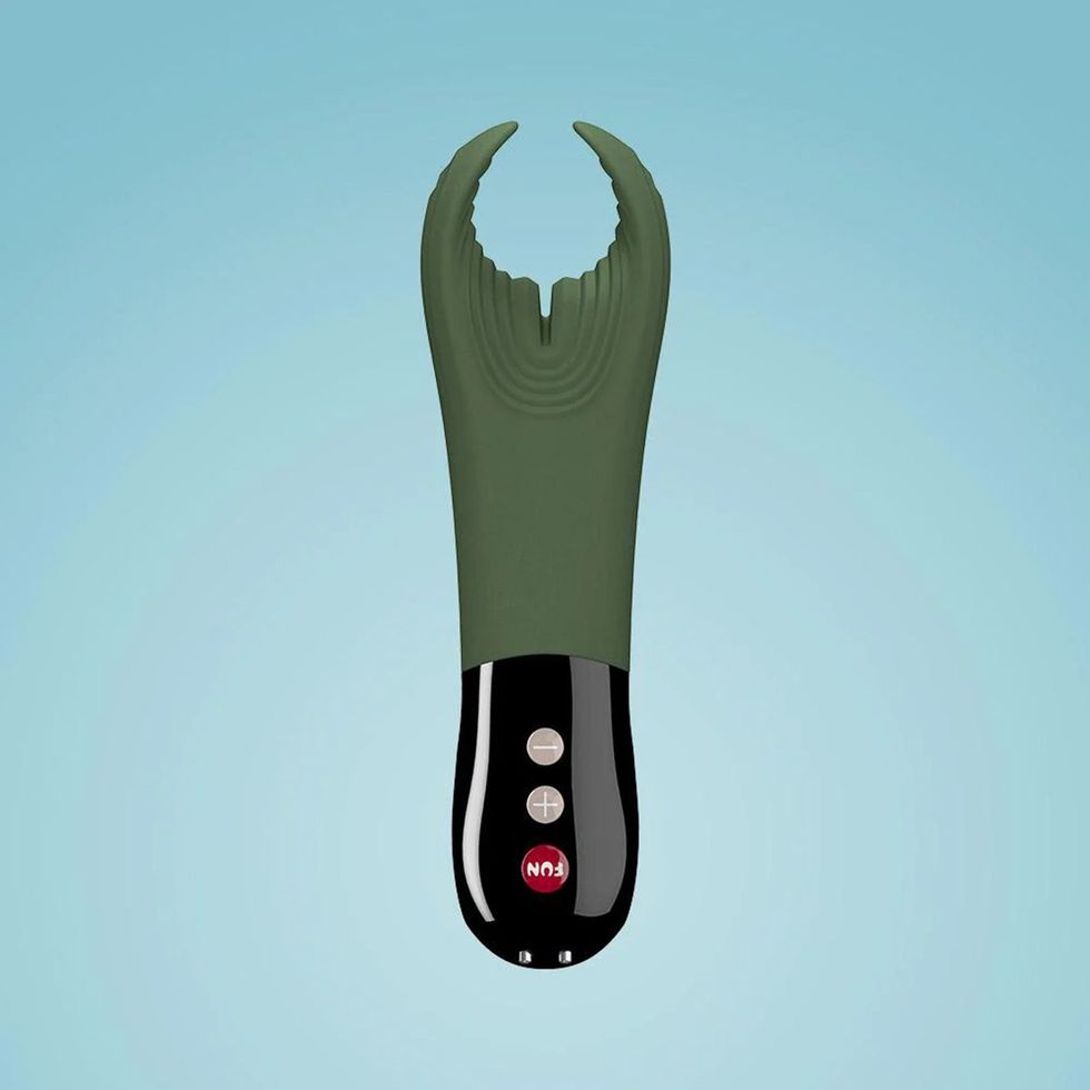 Don't let the colorful mandibles scare you. The Manta Vibrating Stroker is the men’s toy that turns your penis into a throbbing and slobbering vibrator. The unique pronged design with dual motors wraps the shaft making it perfect for stroking or focusing pleasure. The ridges increase the tactile sensations while also holding lube for a smoother glide. Try it during oral or as a long-stroking reach-around during anal. $139.99