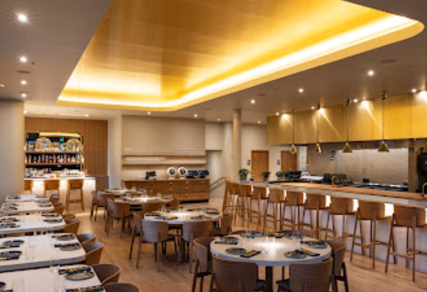 From Doctor B, a beachy cocktail showcasing the Haitian spirit clairin (along with a fair splash of rum and mezcal), to griyo twice-cooked pork with avocado and pikliz, Gourdet’s menu offers a transcendent experience that fuses his past with a modern dining experience. Woman-owned architecture and interior design firm Fieldwork created an equally captivating dining room with a gold-toned recessed ceiling, warm lighting, and commissioned abstract artwork by Peter Gronquist.