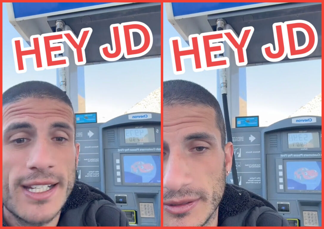 “Hey JD,” Schlossberg begins. “I’m at the pump, and you’re the one guy I know who can give me some relief at this pump.”