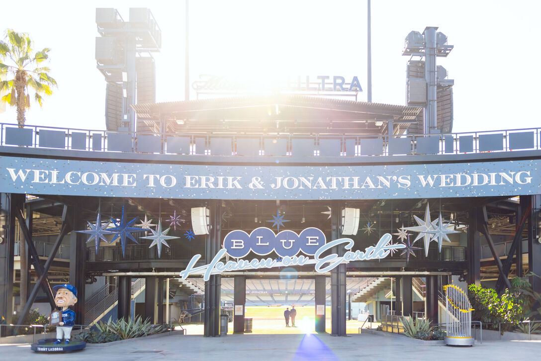 On Friday, the ballpark saw a different kind of iconic moment as the site for the wedding of Dodgers Senior Vice President Erik Braverman and software engineer/model Jonathan Cottrell. The two had been dating since meeting in Puerto Vallarta in 2019 and announced their engagement last August.