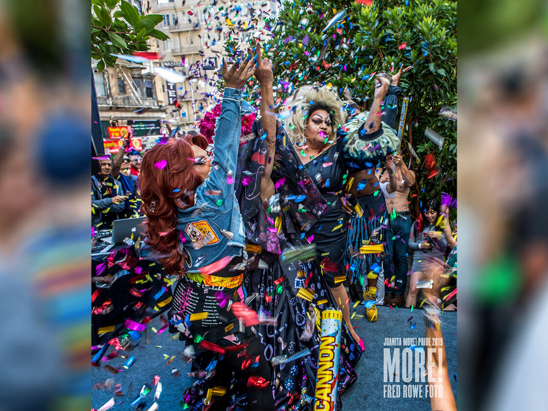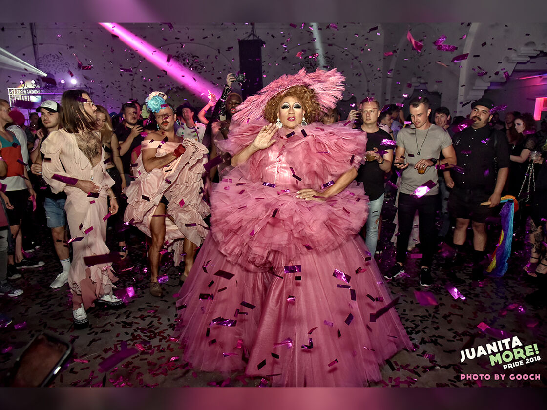 2019 – Juanita performed in an explosion of confetti on the JM! Pride stage with Dulce De Leche, Nicki Jizz and Voodonna.