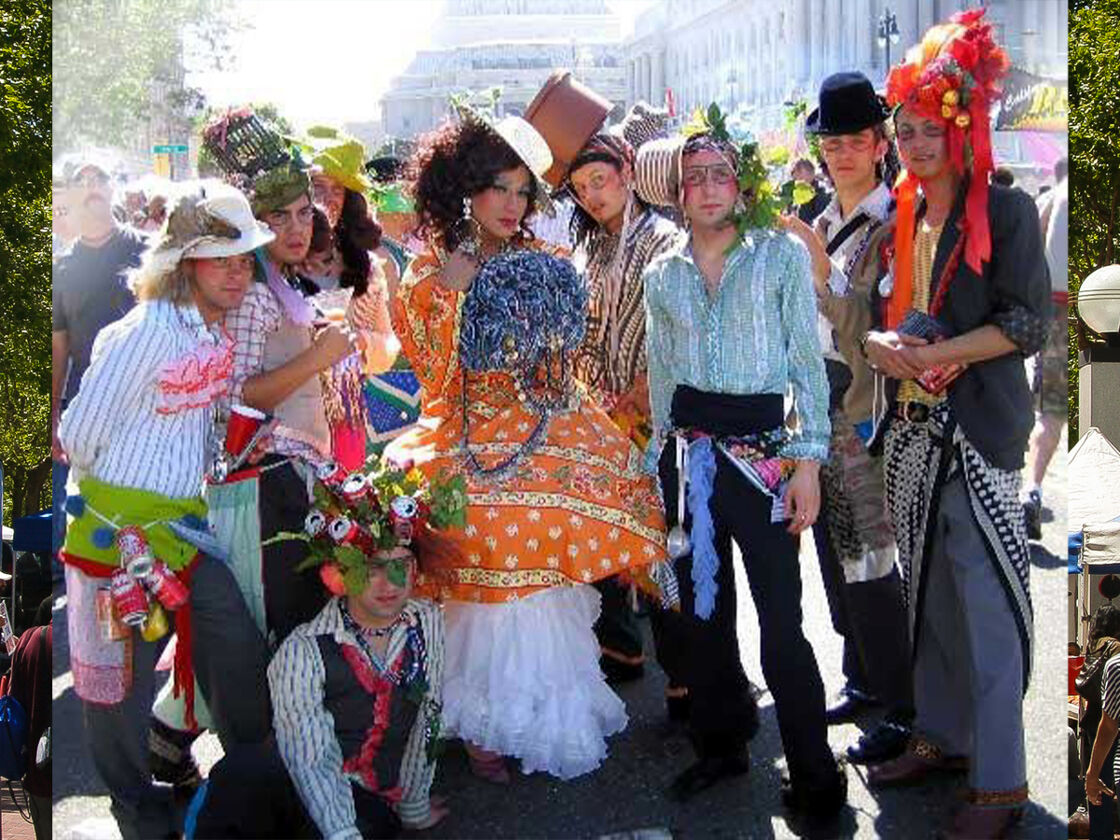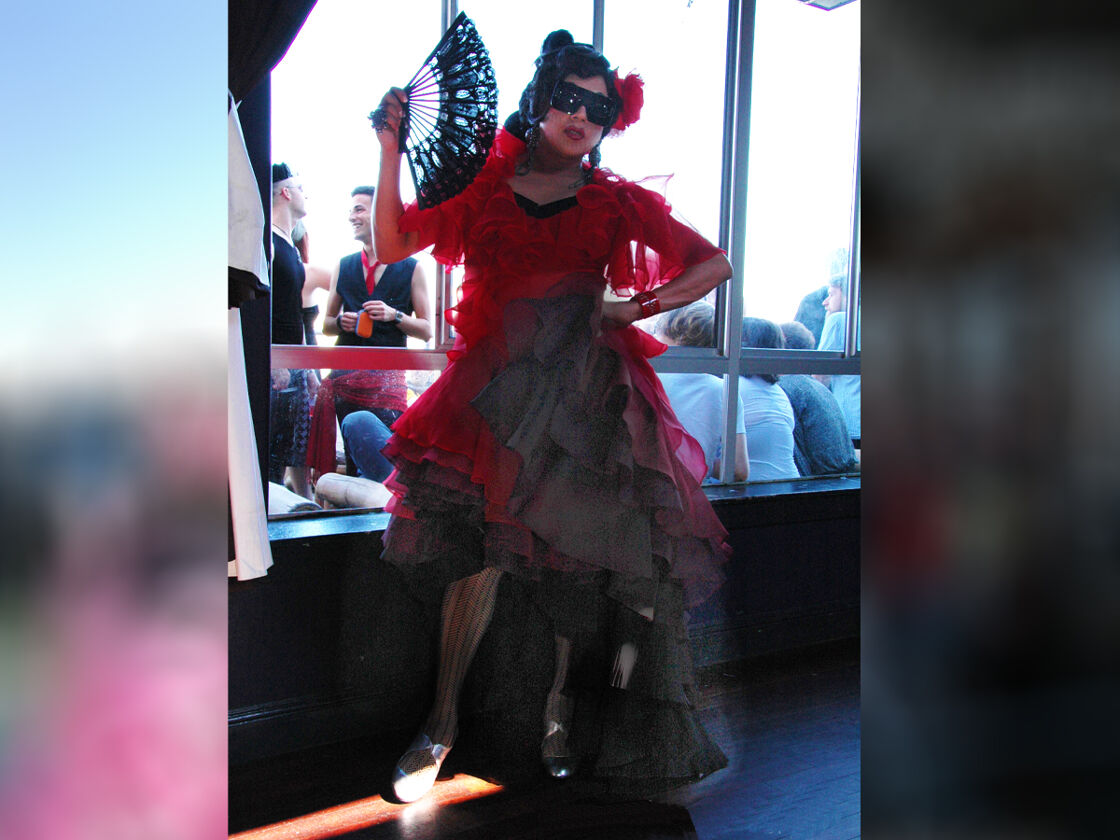 1998 – A Spanish flamenco doll in a vintage shop window on Fillmore Street inspired Juanita’s Pride dress, designed by Mr. David Glamamore.