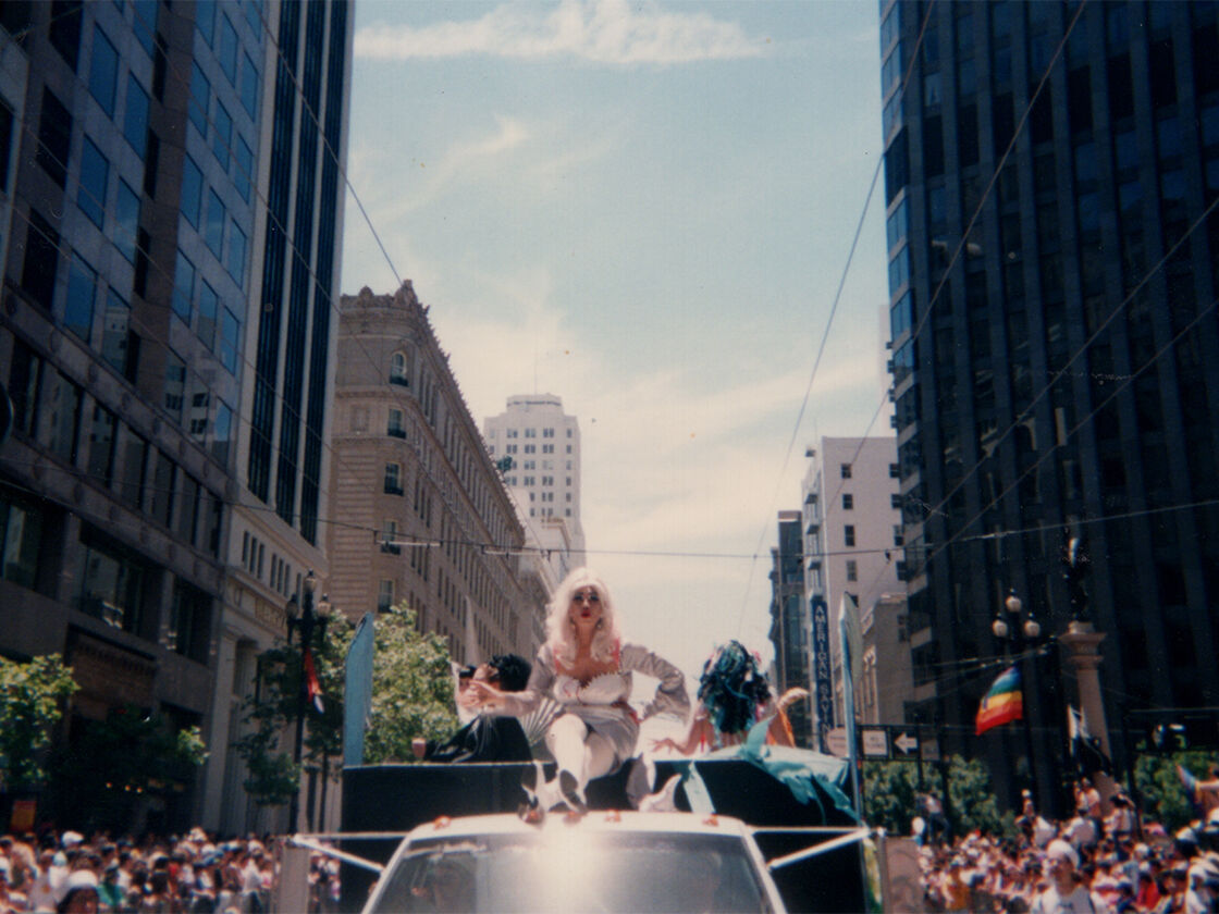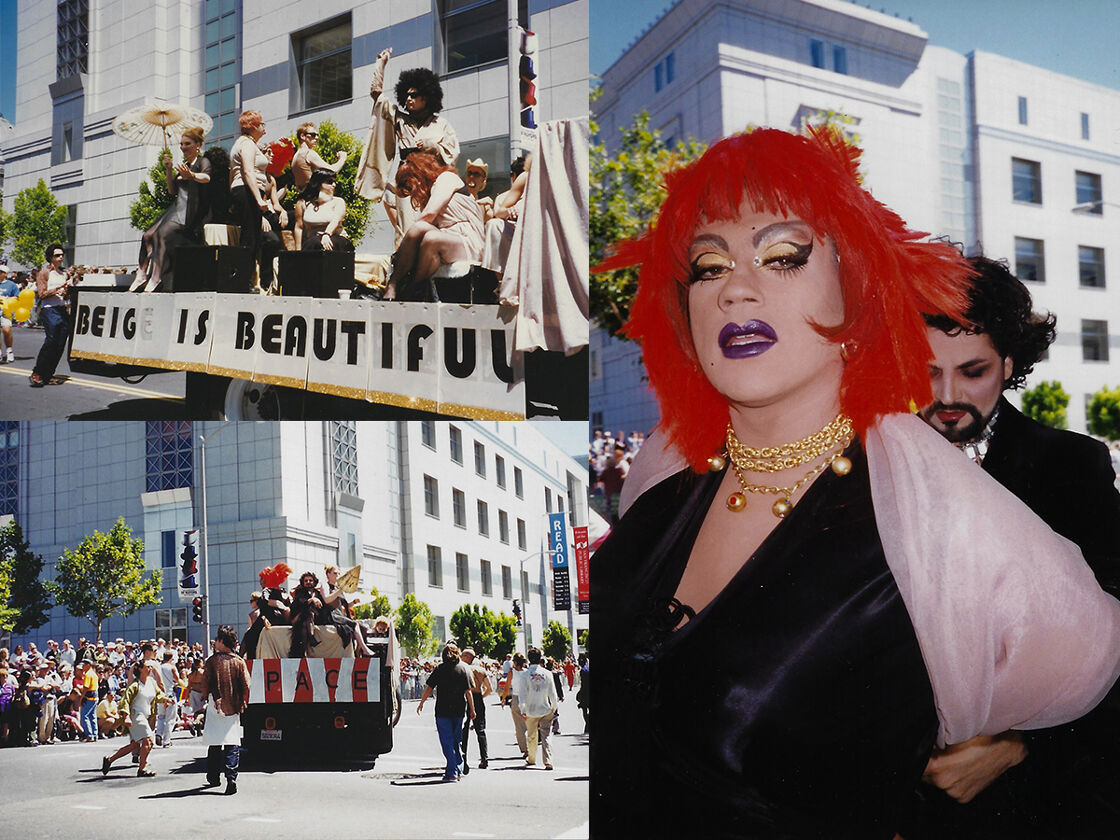 1994—Juanita’s first float in the San Francisco Pride Parade, sponsored by the gallery Space Project, titled “Beige is Beautiful.”