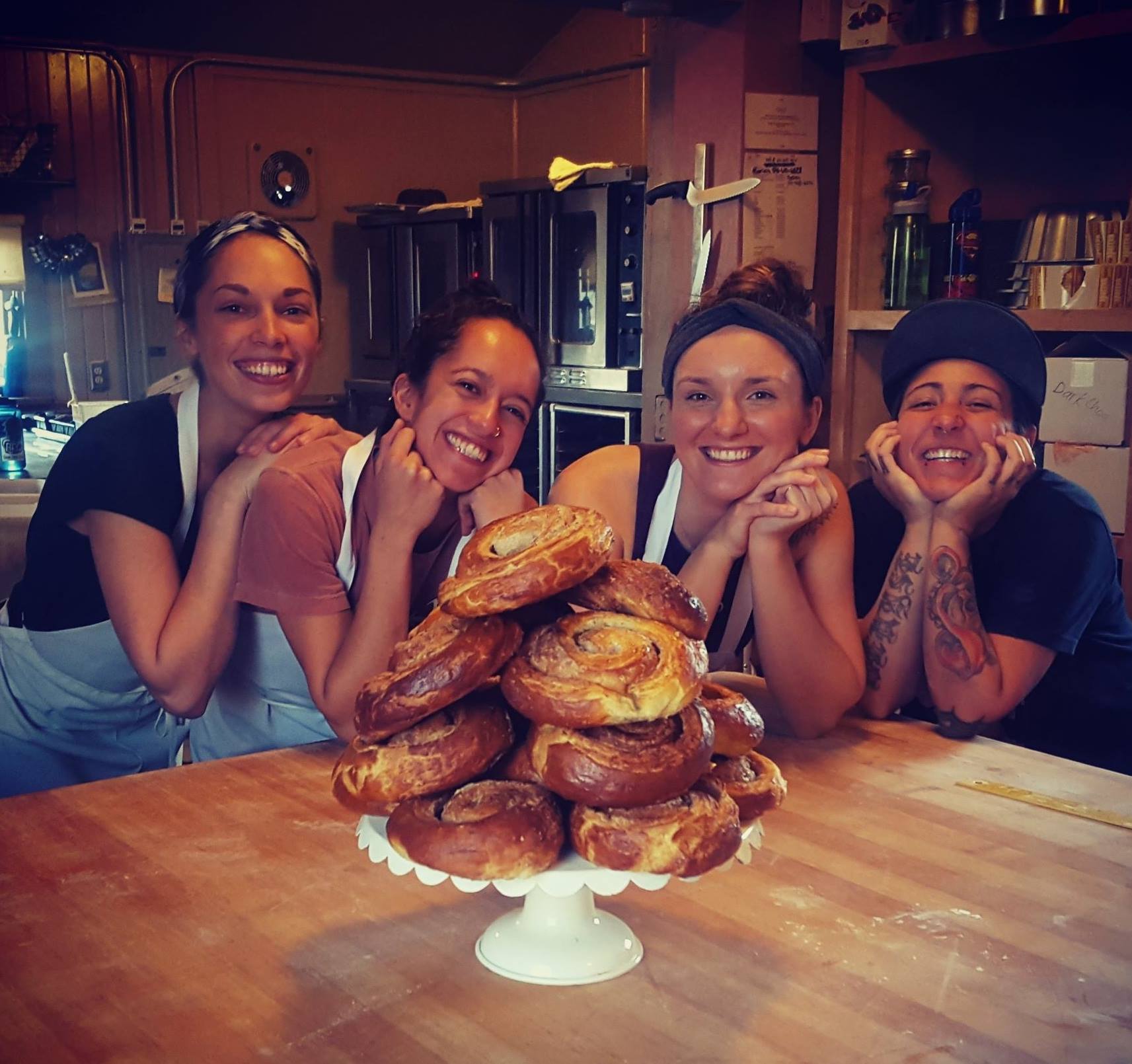 Lesbian-owned Sparrow Bakery is famous for its Ocean Rolls, a sugary vanilla and cardamom treat. They also make a full range of breakfast sandwiches, breads, and drinks in a cozy, family-friendly café setting with indoor and outdoor tables.