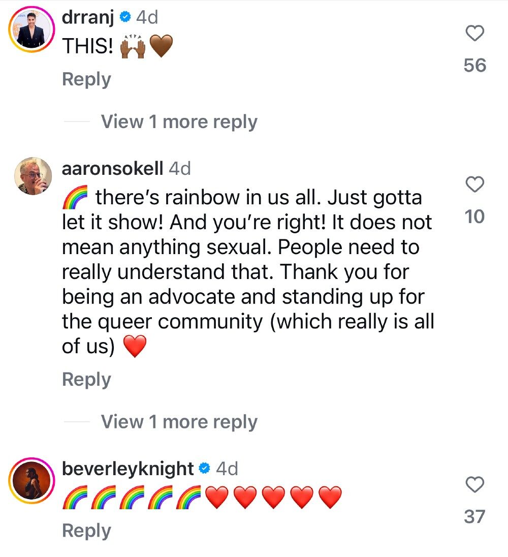 He continued, “But in losing my sister in April the symbol of a rainbow has brought me closer to them in the times I’ve needed it desperately. My sister was very proudly black and very proudly queer. Definitely an ICON to me and so many of their friends and family. In the last year of their life they identified as non-binary. My pride for them knows no bounds.”